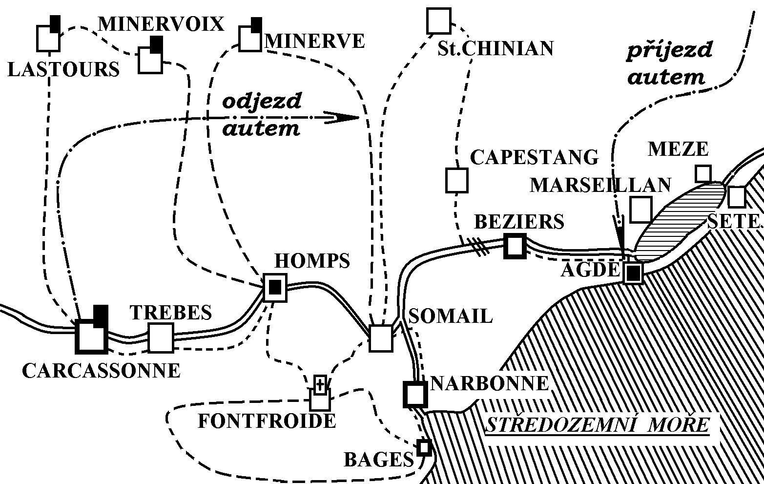 a MINERVOIX. Naše loď na nás bude čekat pod opevněným městem CARCASSONNE.