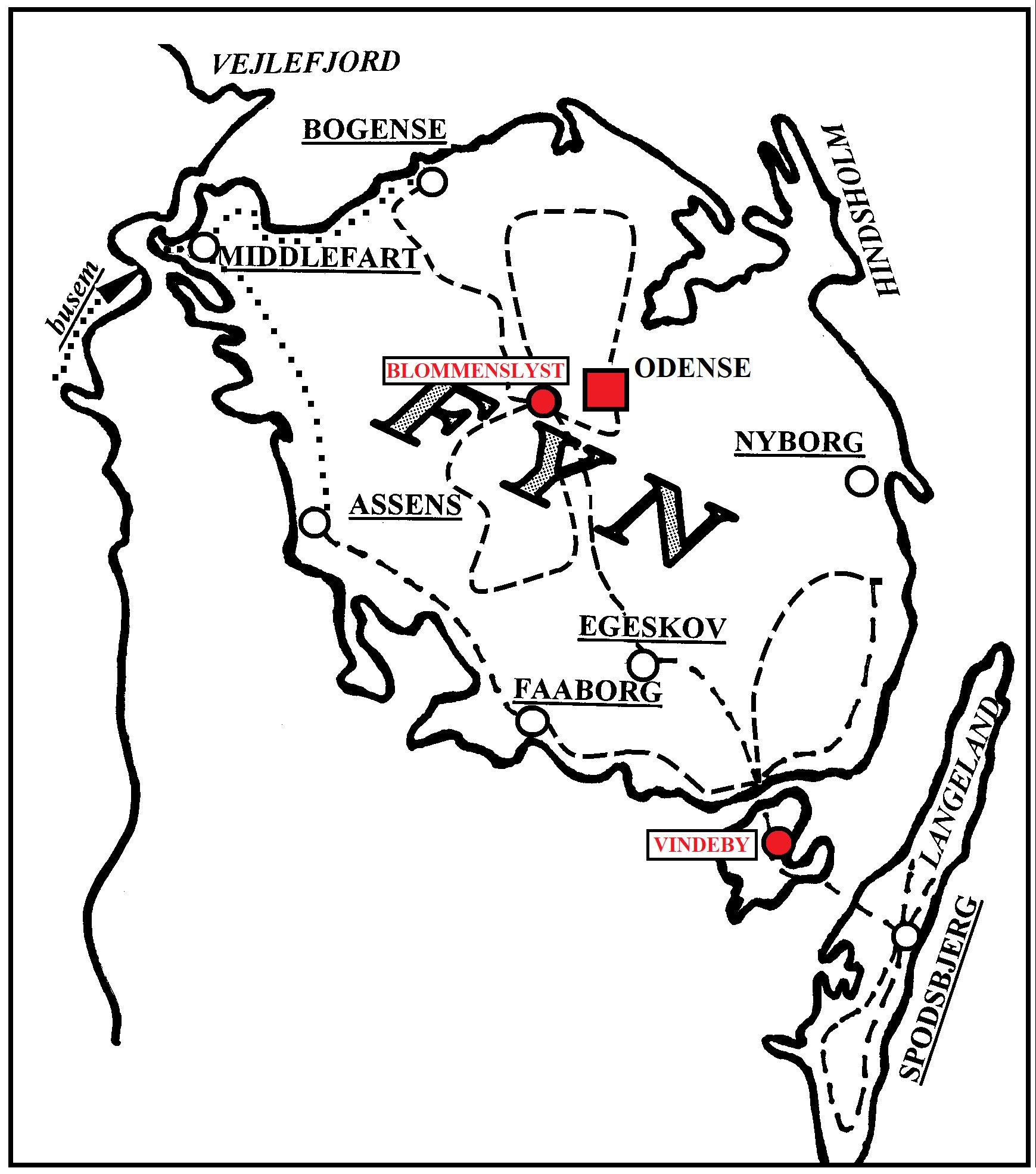5.den: KOLO - zpět na ostrov FYN na nocleh do městečka BLOMMENLYST KRO. Cestou zámek EGESKOV. 60 km mapka