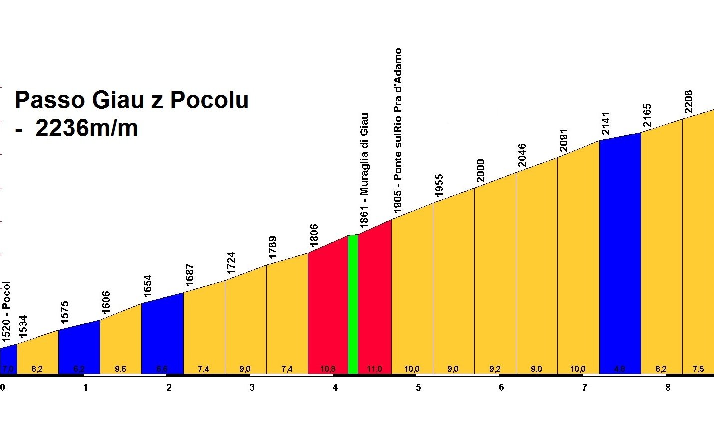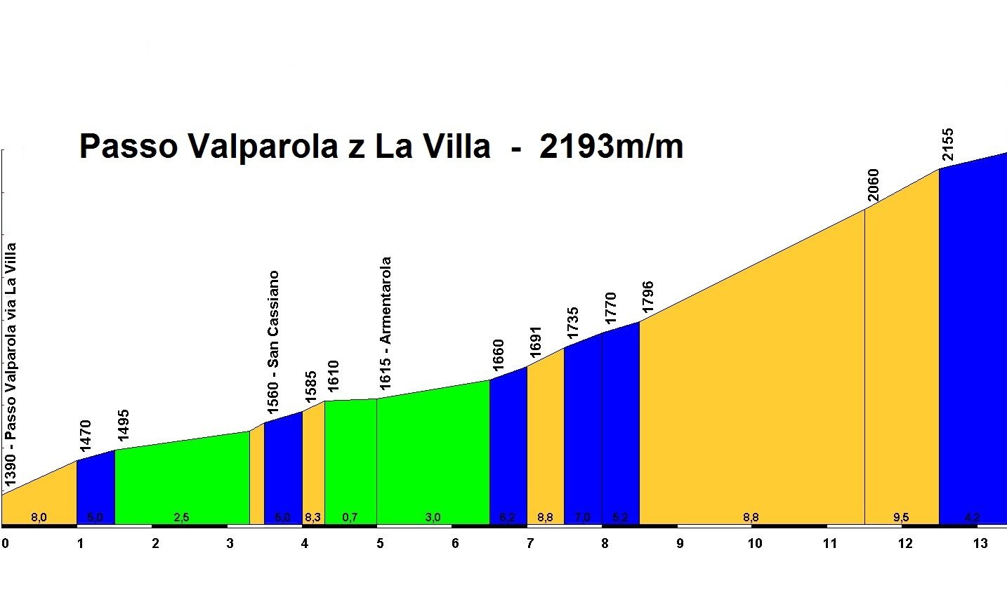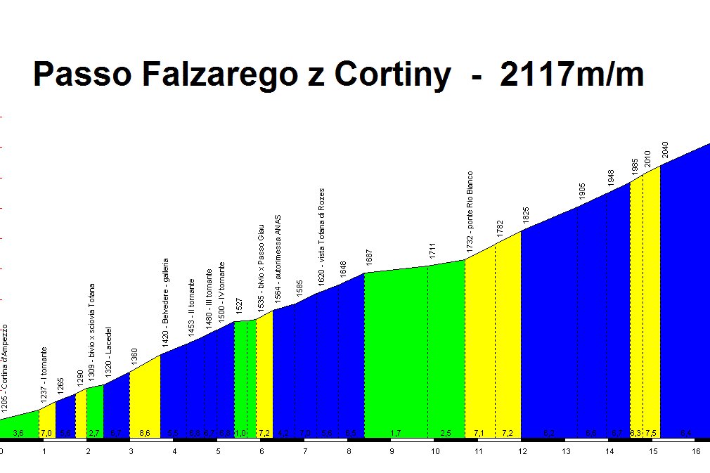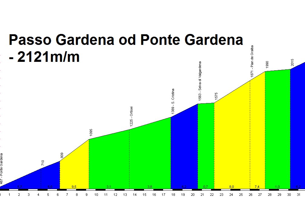 Trochu si hrábnout v nádherných horách, a to pod nejvyšší horou celých Dolomit - MARMOLÁDOU, připomenout si machrovinu účastníků slavné Giro a hlavně si užít komorní skupinku maximálně 16 lidí tohoto zájezdu, - to je to, oč tu běží. Koho ani tohle nepřesvědčilo, tak ho snad zlomí jména a výška nejkrásnějších a nejnáročnějších horských sedel italských Dolomit, kde se rádi vyfotíte u vrcholových cedulí se jmény jako Passo di FEDAIA-2057m, Passo SELLA-2240m, Passo GARDENA-2137m, Passo PORDOI-2242m, Passo VALPAROLA-2192m, Passo FALZAREGO-2105m, Passo GIAU-2236m či Rifugio AURONZO-2320m.