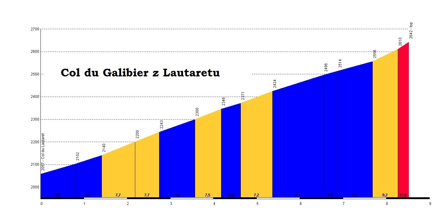 7.den: KOLO - přes Col du LAUTARET(2058) a proslulý Col du GALIBIER (2645m) do kempu v St. Jean (79km).