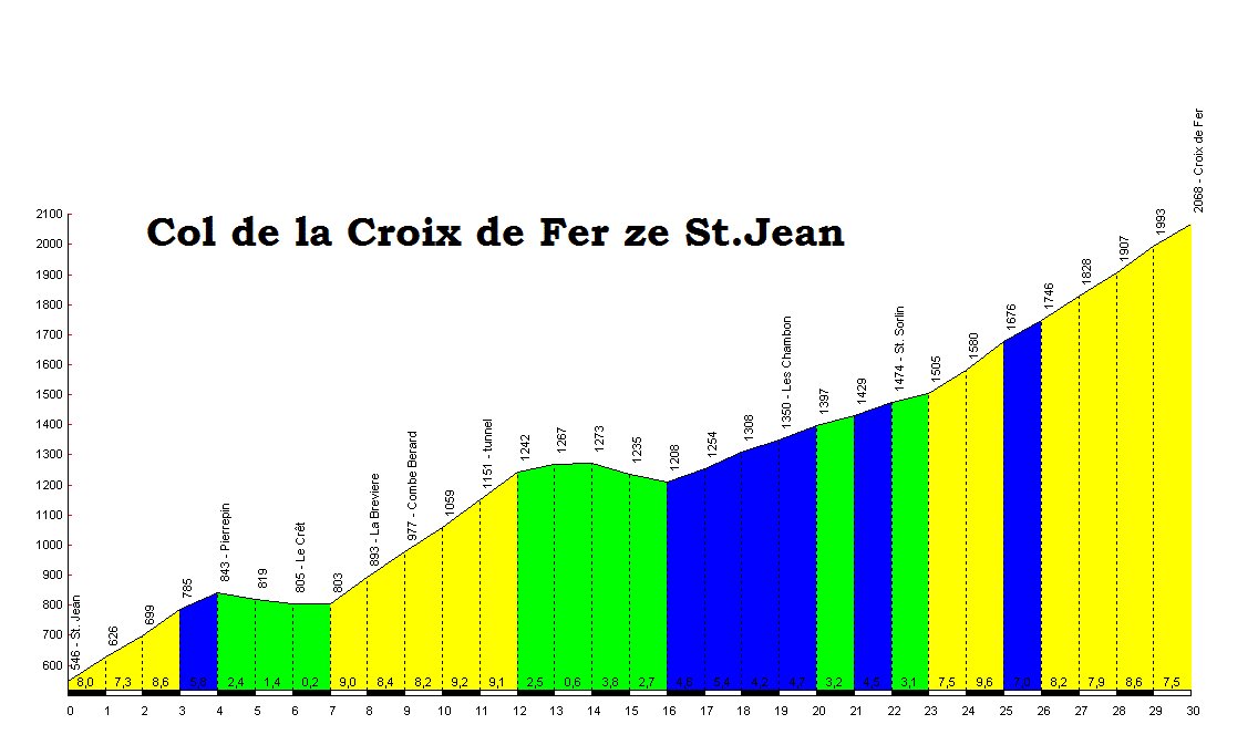 8.den: KOLO - přes Col de la CROIX de FER (2067m) do kempu v Bourg d´Oisans (59km).