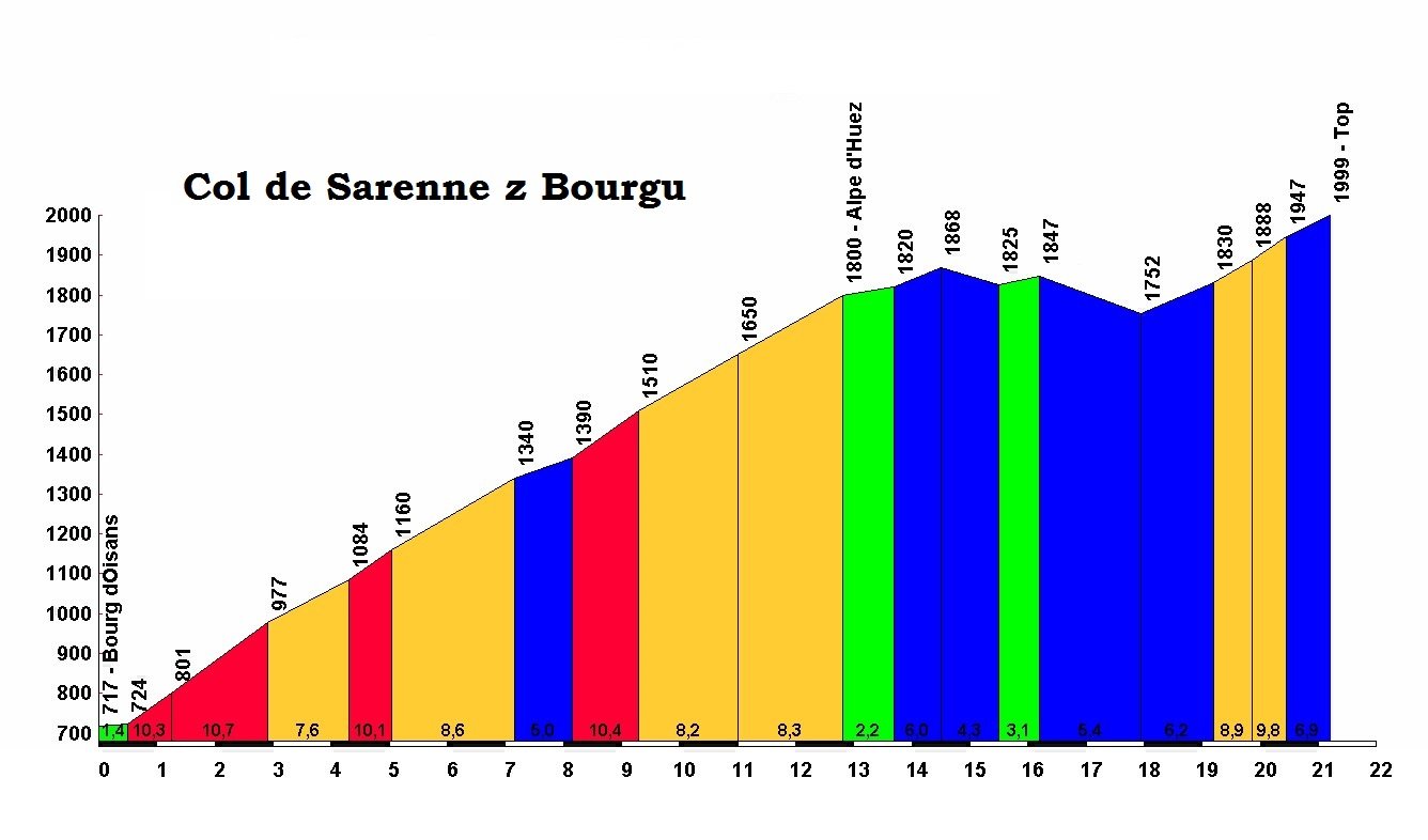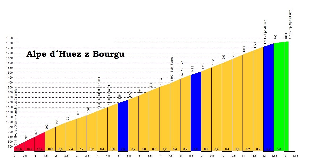Bourg d´Oisans. Tan samý den se potkáme s Tour de France. Zatímco my pojedeme do ALPE d´HUEZ, profíci se budou flákat údolím kolem našeho kempu v Bourg d´Oisans. Celkem nás na zájezdu čeká 11 dvoutisícových sedel a z toho 4 kopce