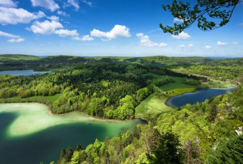 2.den: Ranní dojezd busem do Francie. Etapa na rozježdění z Pontarlier kolem jezera Sain Point s vyhlídkou na vrchol Mont d'Or až k jezeru Abbaye. 70km mapka - klikni