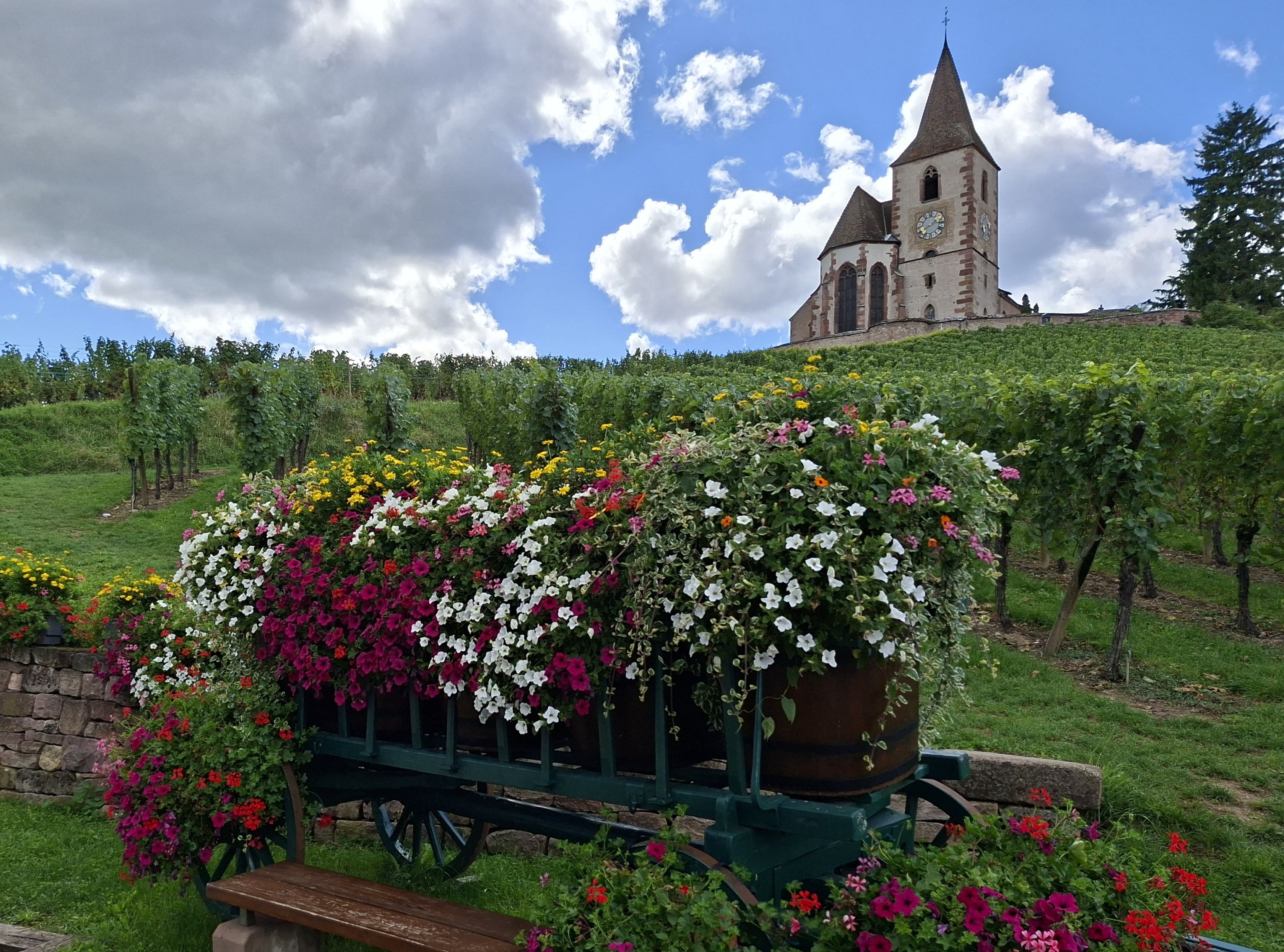 Alsasko je oproti poklidné atmosféře Jury turistickou destinací se vším všudy - barevné vesničky s hrázděnými domky, vyzdobené někdy až moc, hrady a pevnosti, vinařství a vinná stezka vinoucí se pod úpatím Vogéz. Právě do pohoří Vogéz můžeme "uprchnout" před vším tím shonem a vyšlápnout si klidně hned na všechny tři Ballony - Grand (1303m), Petit (1272m) a Alsace (1247m) nebo na věhlasnou Planinu krásných panen (1148m).