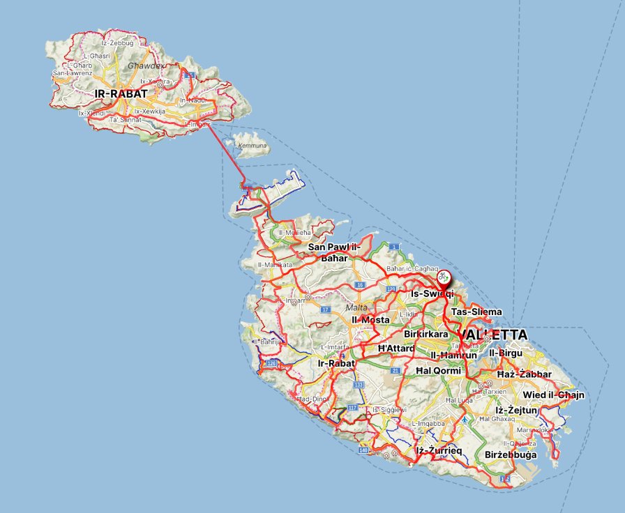 - ostrov Gozo - 86 km vč. trajektu - mapka