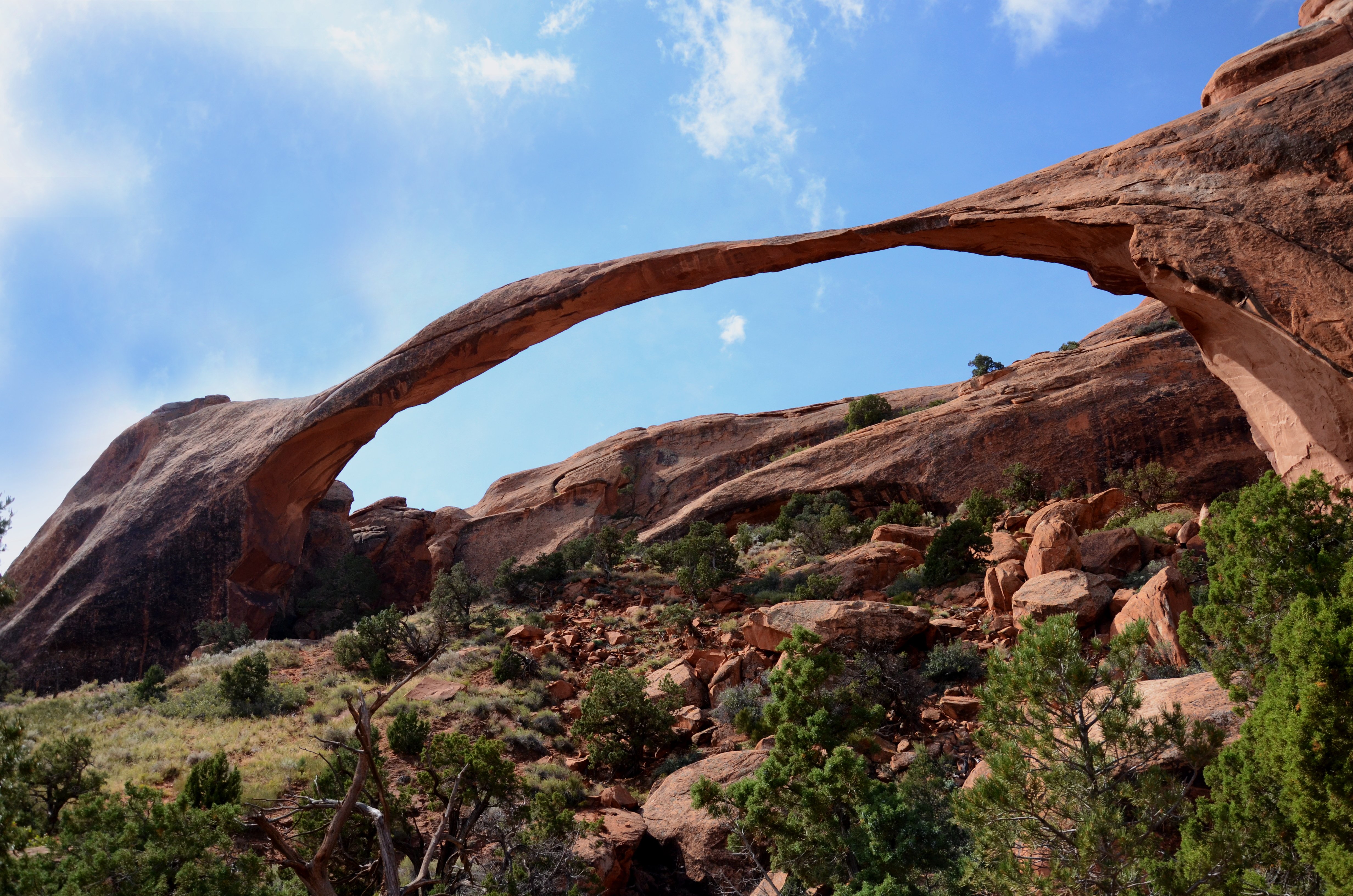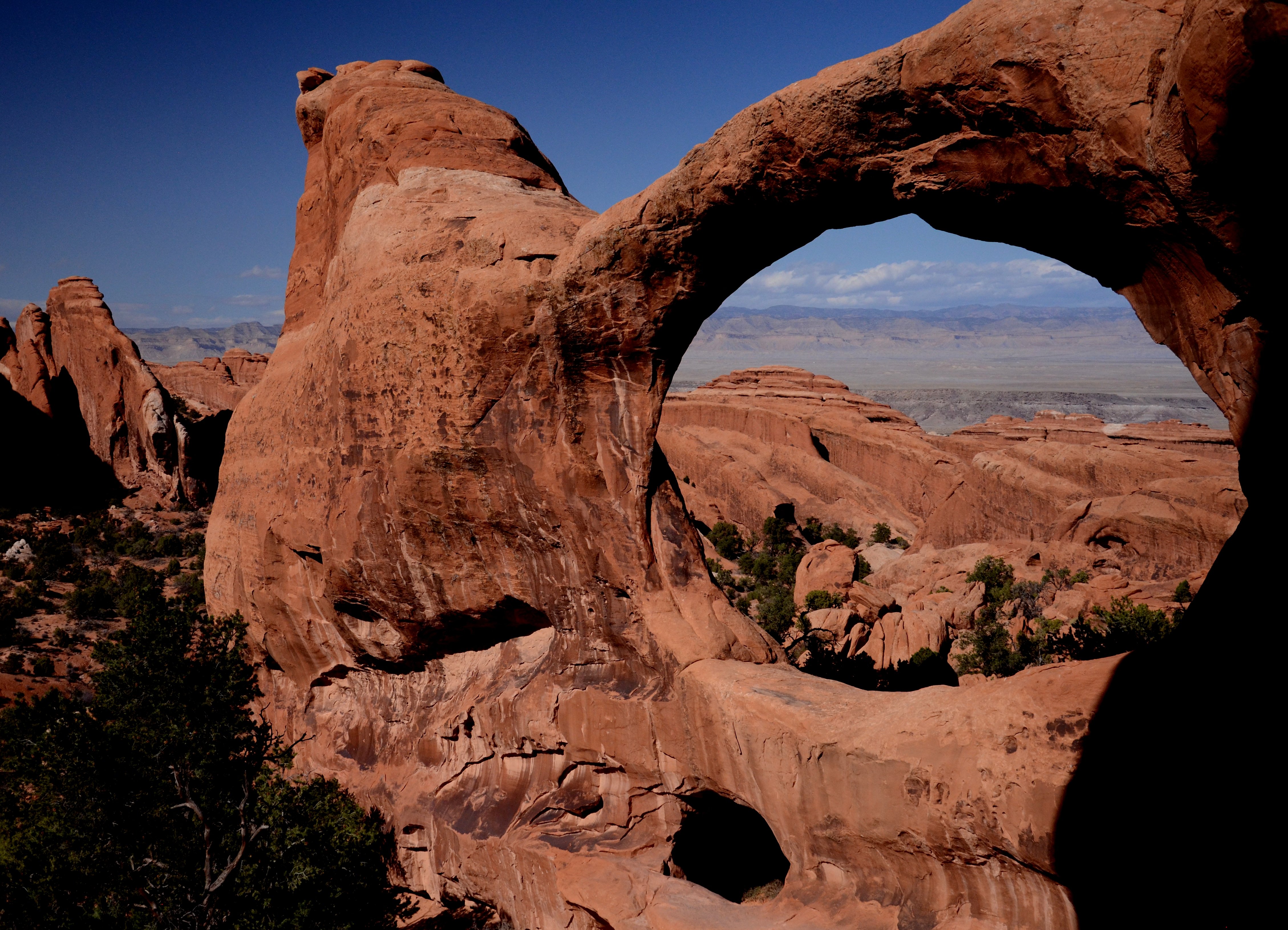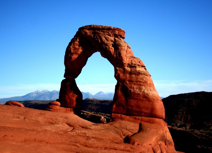 ARCHES NP Fantastické skalní brány, mosty a okna v erodovaném červeném pískovci, je jich 80 - 90. Nejzajímavějšími z nich jsou Dvojitá brána DOUBLE ARCH, brána LADSCAPE ARCH - největší přírodní oblouk na světě (rozpětí 89m). K fotogenické bráně DELICATE ARCH se dá dojít pouze pěšky.