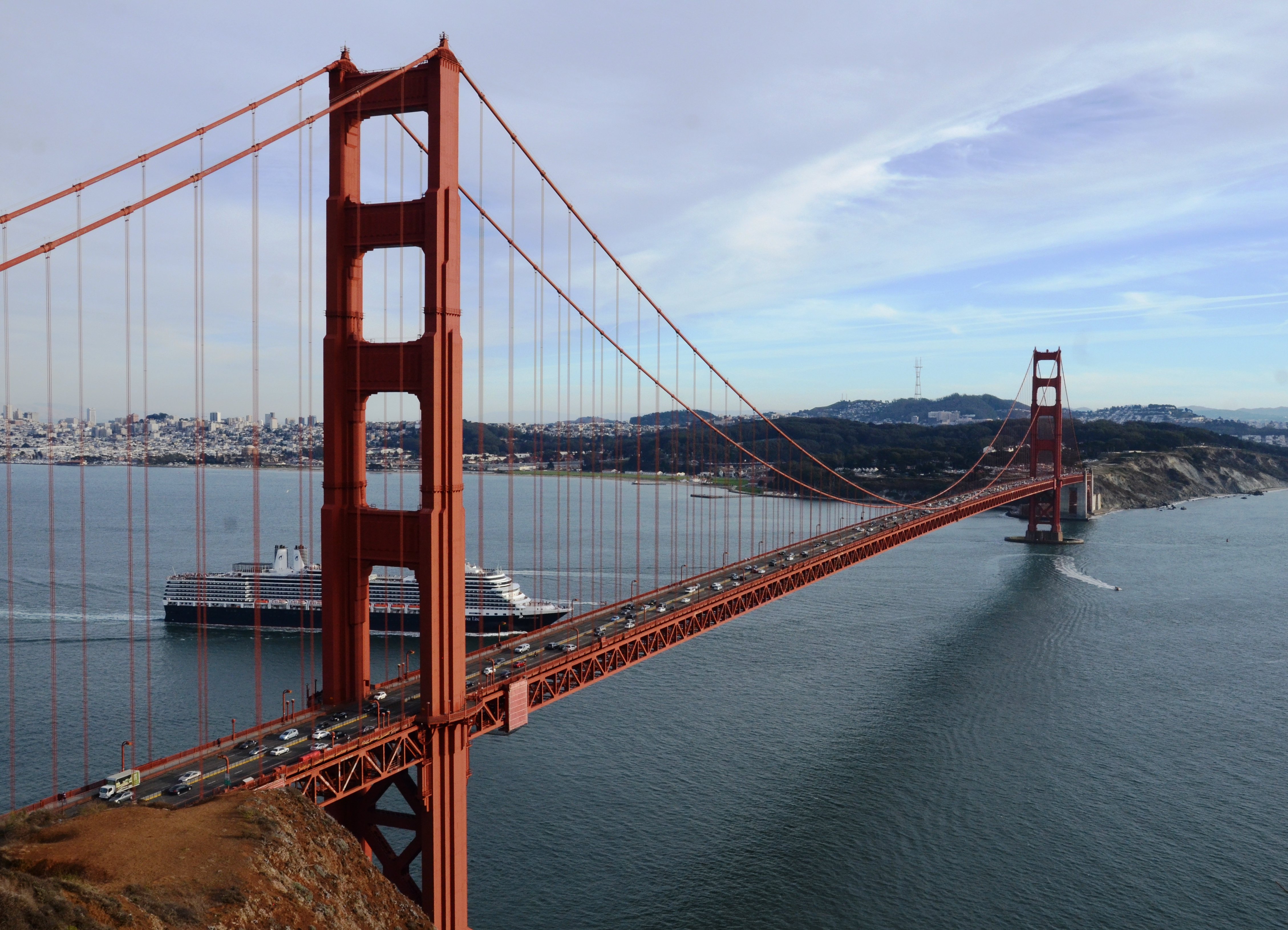 SAN FRANCISCO Díky mírnému klimatu a nádhernému umístění patří San Francisco bez přehánění k nejkrásnějším městům Ameriky. Jeho dominantou je bezpochyby GOLDEN GATE BRIDGE - světoznámý ocelový visutý most, který od svého otevření v roce 1937 zkracuje automobilistům mnoho desítek kilometrů objíždění zálivu San Francisco Bay. Výška mostních pilotů je 227m, světově rekordní rozpětí 1280m bylo překonáno až newyorským Verrazano-Narrows Bridge.